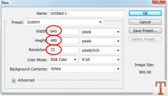 یه سند جدید در اندازه های ۴۸۰×۶۴۰ و با تنظیمات زیر درست کنید.