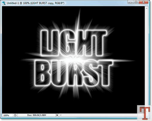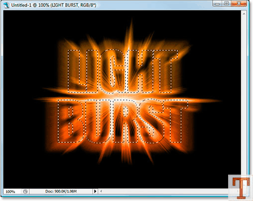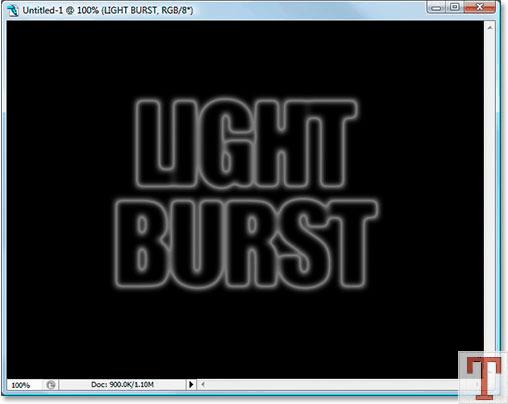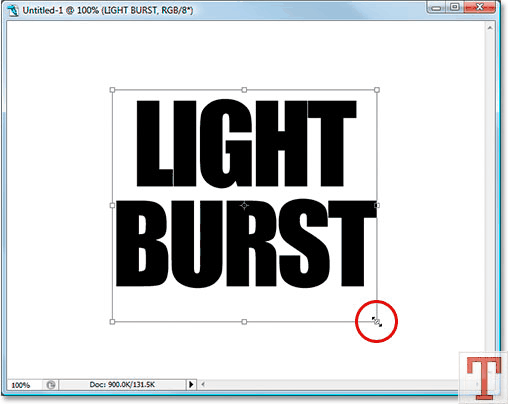 با زدن کلید های Ctrl+T می تونید اندازه نوشتتون رو تغییر بدین. برای این که نوشته هم از عرض و هم از طول تغییر اندازه بده دکمه Shift رو نگه دارین و از گوشه نوشته اندازه اون رو تغییر بدین. مطمئن بشین که به اندازه کافی از اطراف جا برای نشون دادن نور مورد نظرمون باقی مونده و بعد برای تائید دکمه Enter رو بزنید.