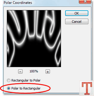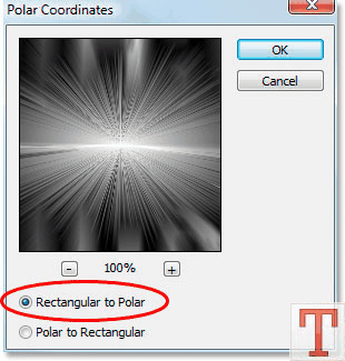 به Filter>Distort>Polar Coordinates برین و این فیلتر رو این بار با این تنظیمات روی تصویر اعمال کنید.