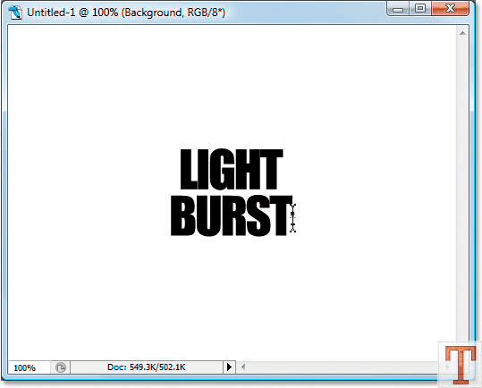 ابزار Type tool رو انتخاب کنید و متن مورد نظرتون رو با رنگ سیاه تایپ کنید. برای انتخاب این ابزار میتونید از دکمه T هم استفاده کنید. من برای این متن از فونت Impact استفاده کردم.