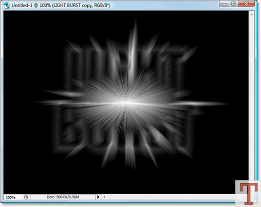 لایه نوشته اصلی رو انتخاب کنید و به Filter> Blur > Radial Blur برین و اون رو با تنظیمات زیر روی لایه اصلی اعمال کنید.