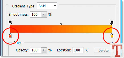 وقتی پنجره Gradient Fill باز شد روی قسمت طیف نور کلیک کنید تا تنظیماتش باز بشه.