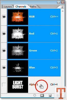 به قسمت Channels برین و با نگه داشتن دکمه Ctrl و کلیک روی Alpha 1 انتخابتون رو Load کنید.